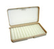 Our large double-sided lite olive-green colour fly box fills up fast with all your favorite flies. Unique triangle cuts allow flies to slide into the foam slits, this prevents damage to the foam when removing flies. The transparent high-impact plastic lid allows a clear view for quick fly selection. A positive snap lock closure seals a rubber O-ring gasket for secure water-resistant fly protection. Sturdy stainless steel hinge pins will not wear out like plastic pins.