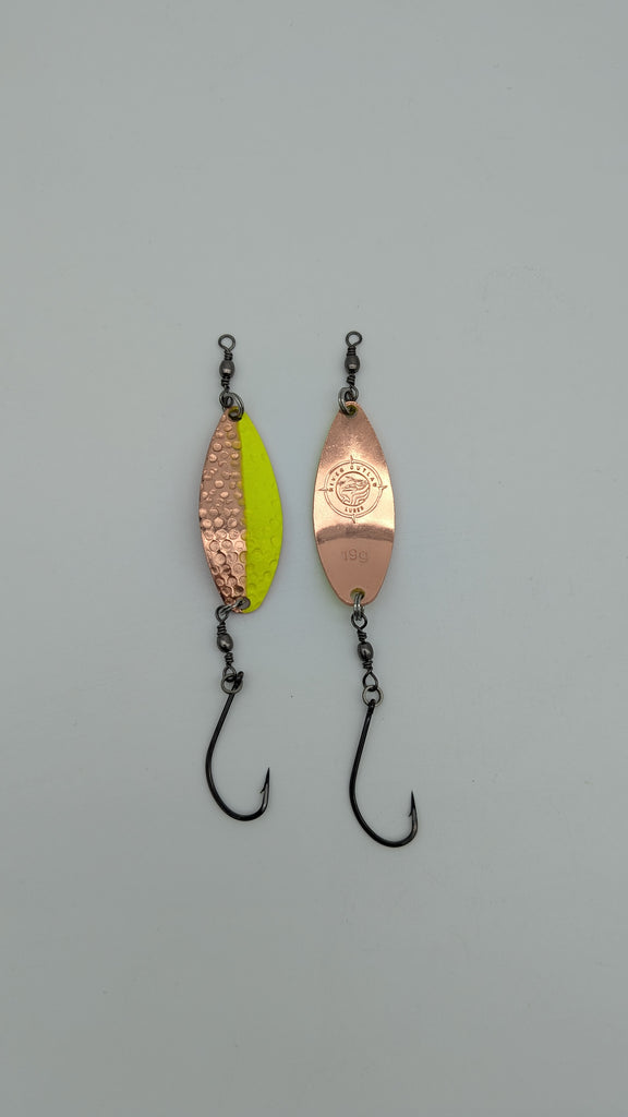 Hit the water with confidence using the River Outlaw Spoons, your go-to casting spoon for targeting salmon, steelhead and bull trout. River Outlaw spoons are available in several sizes and vibrant finishes. These spoons feature a trailing hook design, complete with a top swivel and a swivel between the spoon and hook. This setup not only reduces line twist but also helps to improve your landing rate, keeping more fish on the line and in your net.
