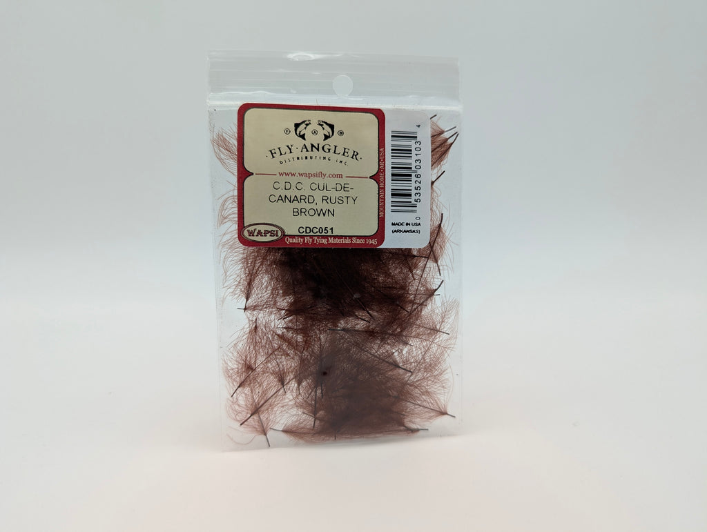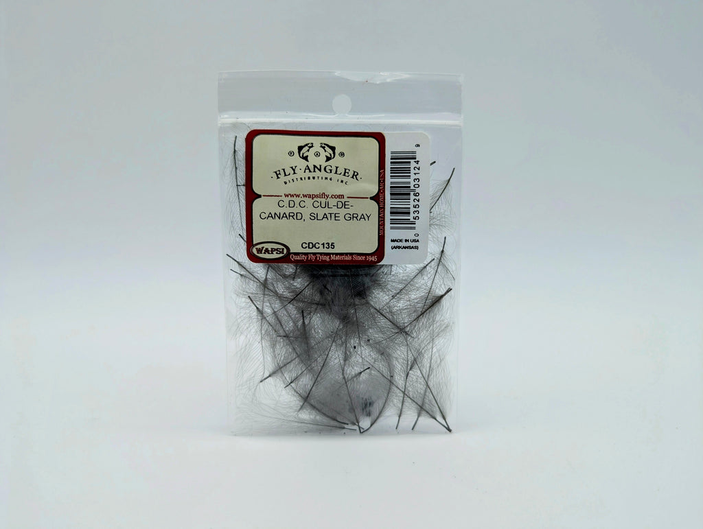 C.D.C. is an abbreviation of the French term Cul De Canard which roughly translated means from the rump or butt of the duck. As the description implies, these are the feathers that surround the preen gland on the back of the bird slightly ahead of the tail. Ducks use secretions from this gland to condition and waterproof their feathers. As a result the feathers surrounding the preen gland are of great value to fly tyers wanting to add buoyancy to their flies.