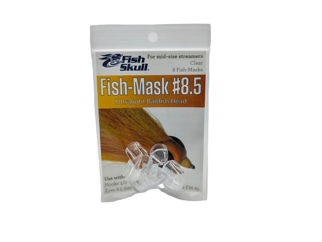 The Fish-Mask is a weightless, clear version of the Baitfish Head that provides a clean, simple and effective alternative to creating heads with epoxies. A realistic baitfish profile and the ability to take on the colour of body materials make it a versatile platform for tying a wide variety of weightless streamer patterns. The 8 sizes in the Fish-Mask range are designed to exactly fit the 8 sizes of Living Eyes (a #4 Fish-Mask uses 4mm Living Eyes, a #5 Fish-Mask uses 5mm Living Eyes, etc.). Quantity per pack: #3 (12); #4, #5 (10); #6, #7, #8.5 (8); #10, #15 (6).