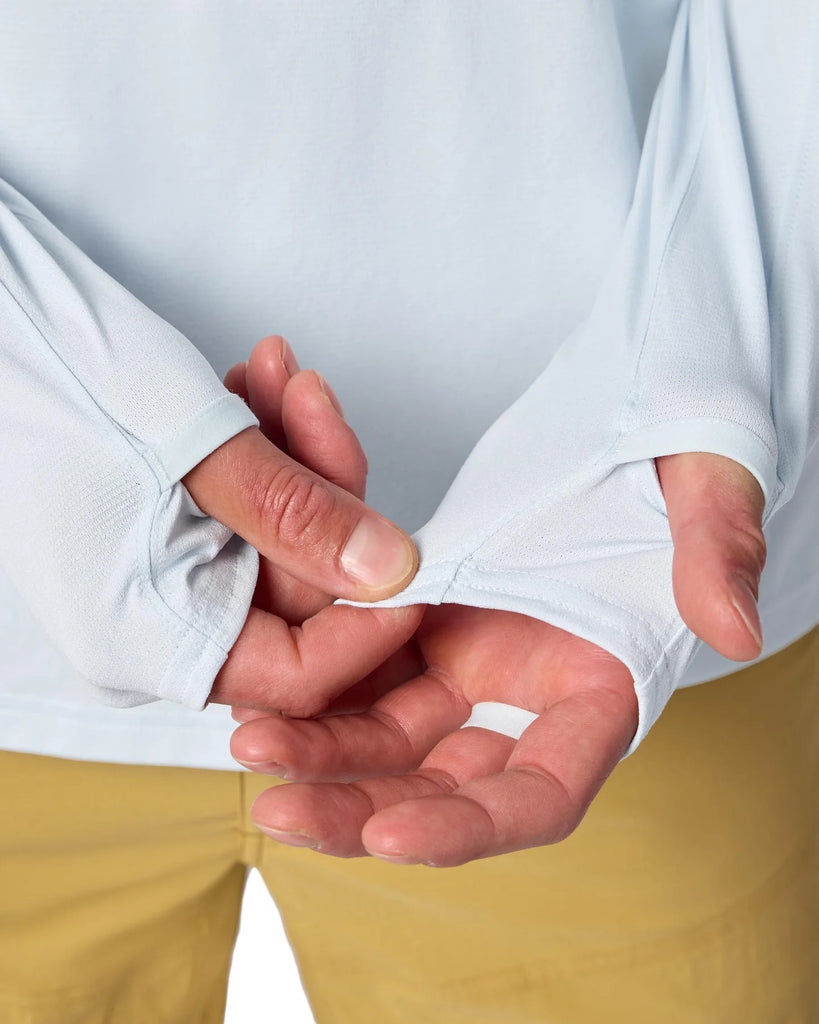 Simms SolarFlex Crew provides amazing UPF 50+ sun protection whether fishing off a boat or at the river's edge. Fabric has been updated to a more natural hand and offers an opaque appearance. Essential back-of-hand sun protection deliver full coverage for sunny days.