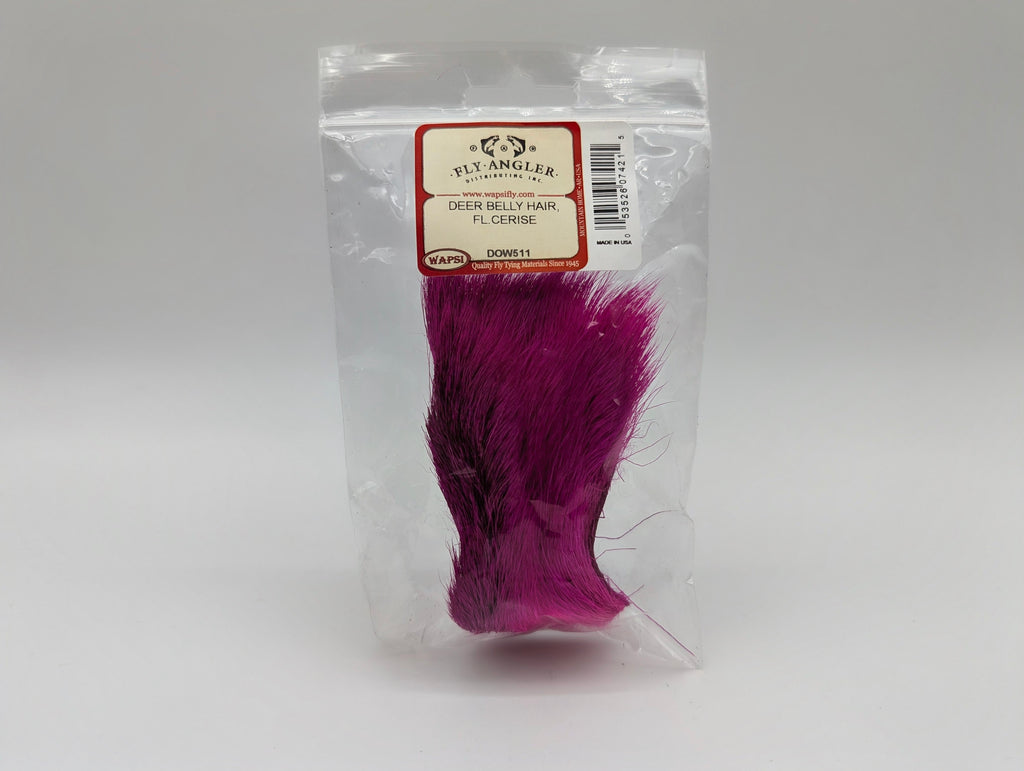 Belly hair has a slightly different texture than body hair and lacks mottling so it can be dyed to a vibrant colour or bleached white. Like body hair it is easy to spin and is ideal for bass bugs.